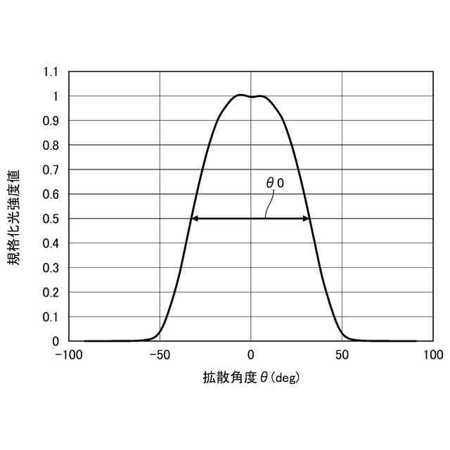 実施形態に係る照明装置が備える光拡散部材による拡散光の双方向透過率分布関数の半値角を説明する図である。