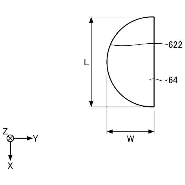 前記出射面を平面視したときの前記キャビティを構成する楕円は、前記第1端面の法線に沿う方向を短軸とし、前記第1端面の法線に直交する方向を長軸とし、