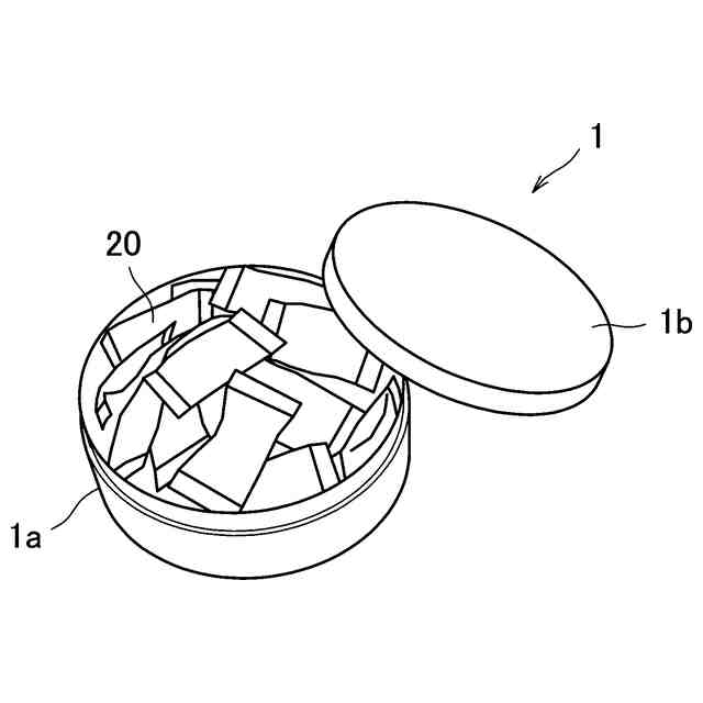 香味充填物を不織布などのパウチで包んで形成されたスヌース(口腔用の香味供給物品)が知られている。特許文献1に示されるように、このような口腔用の香味供給物品は、有底円筒形状の本体と、本体を覆うカバーとから構成された容器に収容される。容器の外周面には、製品情報などを記載したラベルが貼り付けられている。このような容器を複数パッキングして容器包装体を形成し、この容器包装体の外周面にラベルを貼り付けることもある。