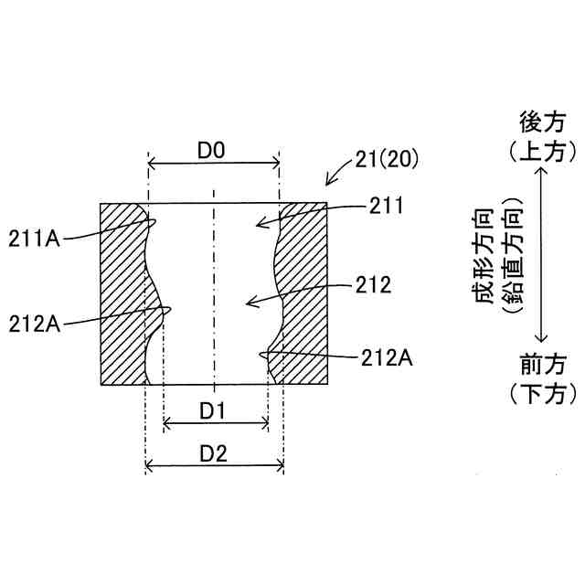 前記第二成形ダイの前記ガイド部の内形寸法のうちの少なくとも一部が、