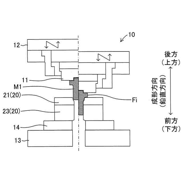 しかしながら、一つの鍛造成形工程を経ることのみで製品の形状を成形する場合には、鍛造成形によって生じさせる材料流動が多く、即ち、成形量が多くなるため、成形荷重を低減させることには限度がある。その結果、鍛造成形に伴って成形ダイに負荷がかかり、型寿命が短くなる虞がある。従って、従来の鍛造成形方法等については、型寿命を延ばす点で、改良の余地がある。