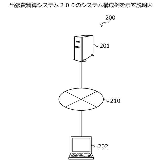 図2は、出張費精算システム200のシステム構成例を示す説明図である。