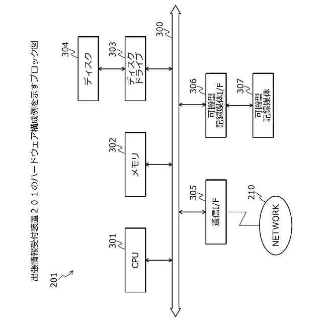 図3は、出張情報受付装置201のハードウェア構成例を示すブロック図である。