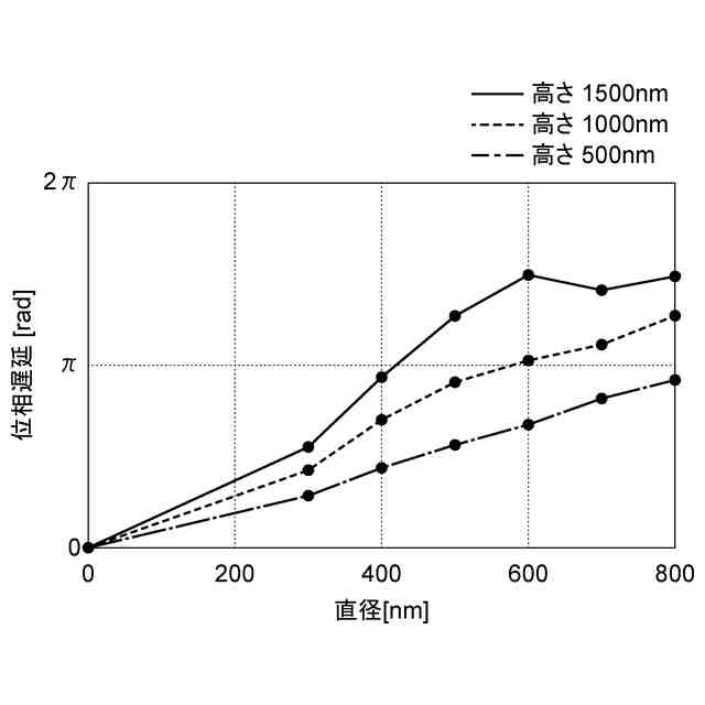 メタサーフェス構造は、可視光透過性を有する材料で構成されてもよい。この場合、可視光が柱状体を通過することによって、可視光の位相遅延が生じる。したがって、各柱状体において生じる位相遅延を適宜調整することで、所望のレンズ機能を得ることができる。