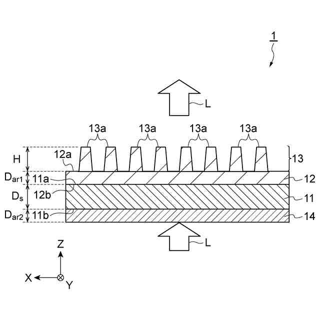 特許文献1に記載のメタレンズ(メタサーフェスレンズ)においては、基板とナノ構造との境界において生じる反射光を抑制することができない。