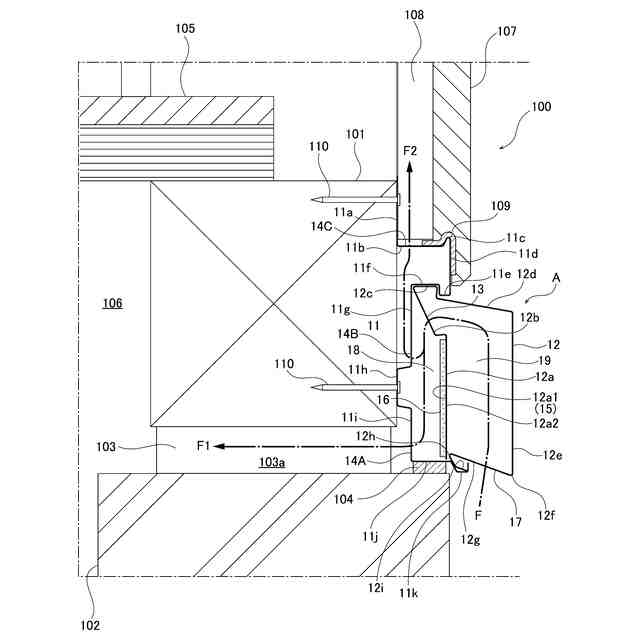 また、特許文献1の第2実施形態には、吸水性体積膨張材(8)を用いて、屋外(O)から床下空間(U)に連通する通気経路(VR)を遮断する土台水切の遮水装置が開示されている。