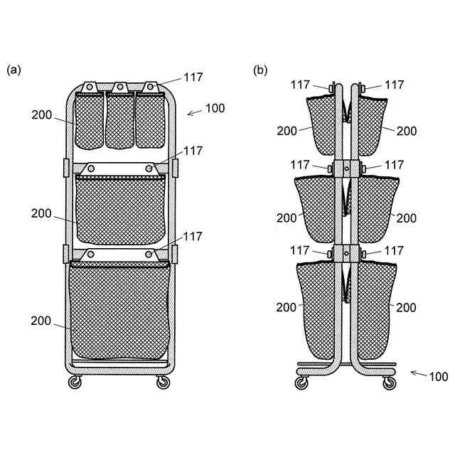 【解決手段】複数の洗濯ネット(200)と、前記複数の洗濯ネットの各々を着脱自在に吊り下げる複数の洗濯ネット掛け部(117)を備えた洗濯ネットスタンド(100)と、を有するランドリーラック。