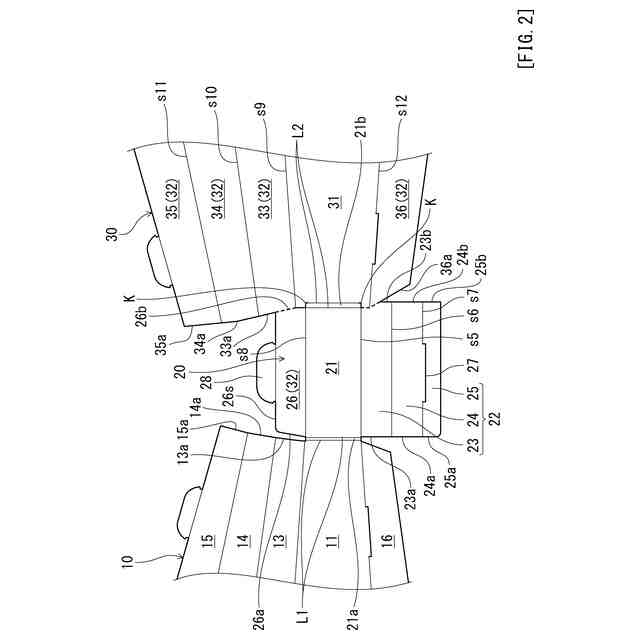図1に示すように、第1シート部10は、面同士を打ち当てて音を鳴らす一方の打ち鳴らし面を有する第1内面板11と、第1内面板11の側辺に連らなって設けられた第1外周壁12とを有している。