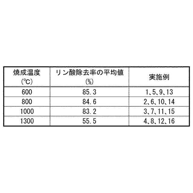 図12は、焼成温度1300℃で調製された実施例13~16のリン酸吸着剤のリン酸除去率を示す。