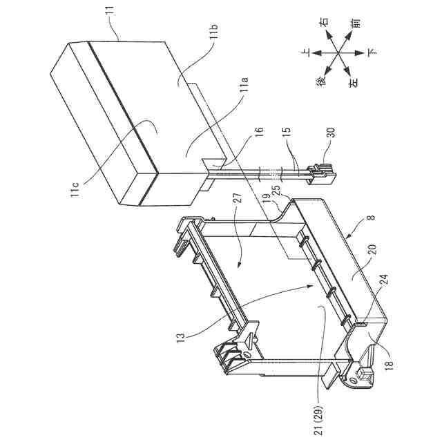 図3は、電池収納ボックスと電池の斜め下方から見た斜視図である。