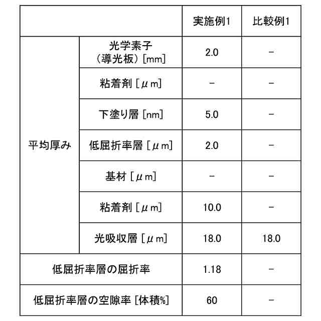 【解決手段】光学素子と、屈折率が1.25以下の低屈折率層と、光源からの光を吸収する光吸収層と、をこの順で有する積層光学部材である。