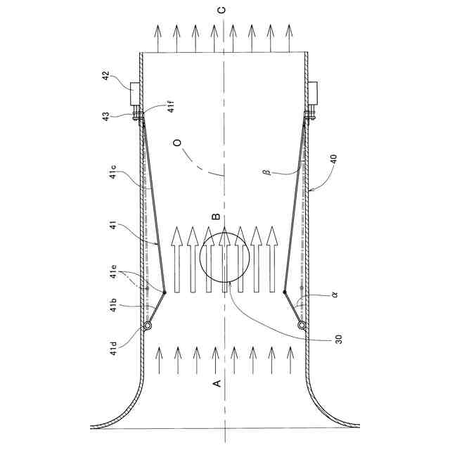 また、構成2において、前記流路断面可変機構は、下流に向かうにつれて徐々に流路断面が小さくなるように傾斜する第一部分を前記エアフローセンサよりも上流側に備え、下流に向かうにつれて徐々に流路断面が大きくなるように傾斜する第二部分を前記第一部分よりも下流側に備え、前記第一部分の上流側端を前記吸気通路に回動可能に接続する第一接続部と、前記第一部分と前記第二部分とを回動可能に接続する第二接続部とを備え、前記第二部分にアクチュエータが接続され、前記流路断面制御手段は、前記アクチュエータを動作させて前記第二部分の下流側端を前記吸気通路の流れ方向に沿ってスライドさせることで前記流路断面を縮小する構成を採用できる(構成4)。