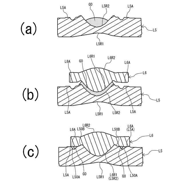 ただし、このように接着剤で2枚のレンズを接合した場合には、レンズ面間の接着剤に気泡が混入する場合がある。特許文献1には、このような気泡の発生を抑制するために、接着剤層(対向するレンズ面間の間隔)を中心軸側で薄くして周辺側で厚くすると共に、レンズ面よりも外側のレンズ間において、余剰の接着剤を収容する接着剤溜を設けることが記載されている。供給される接着剤の量が不足した場合には、レンズ面間において接着剤がない空隙が形成される場合があるため、このような接着剤溜を設けると共に、接合の際に供給する接着剤の量を、レンズ面間の空間の体積よりも大きくすれば、余剰となった接着剤をこのような接着剤溜に収容することができる。