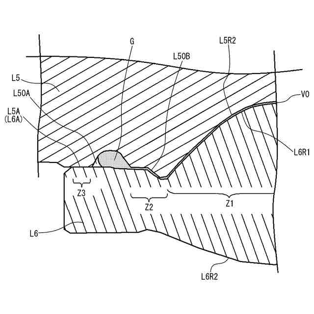この観点からは、このような余剰の接着剤が発生しないように前記の接着剤溜の体積を大きくすることが有効である。しかしながら、接着剤溜中の接着剤の体積が大きくなった場合、この接着剤の固化時の体積変化(収縮)によって、固化時にレンズ面間の接着剤層が接着剤溜側に吸い上げられ、レンズ面間の接着剤層に空隙が形成される場合があった。更に、この場合における接着剤溜はレンズ面の外側に位置し、光路上には存在しないが、接着剤溜中の接着剤に起因した迷光が光路に侵入してゴーストの原因となる場合もあった。