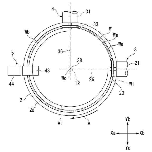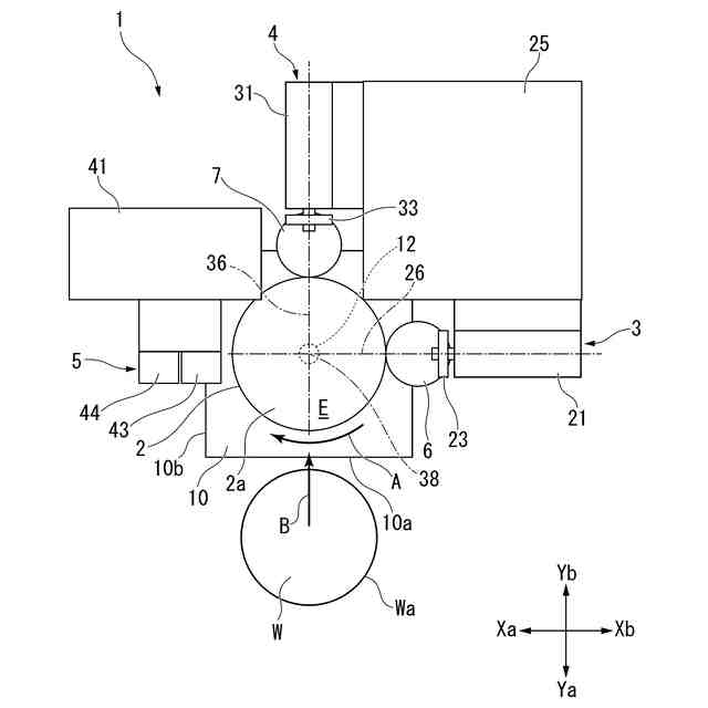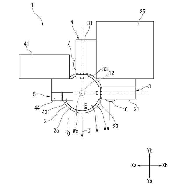 <2>上記<1>に記載のトリミング加工装置では、上記加工テーブルは、上記回転軸に交差する平面を形成するX-Y平面においてX方向、Y方向へ移動可能であってもよい。