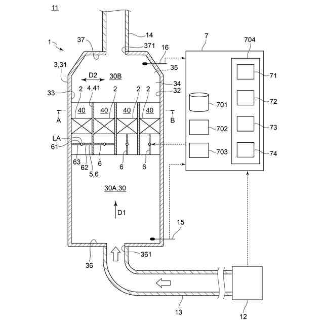 前記触媒ケーシングの入口の排ガス温度を考慮して、前記開閉数決定部において決定された前記ダンパの前記開閉数を補正するように構成された第2補正部を含む、