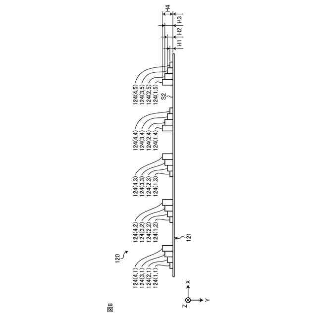 図20Aは、図18に示すリード板を光センサから列方向に沿って見たときの側面図であり、3,4行目の複数のタブ部に含まれる複数の第2タブ部を示す図である。