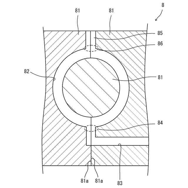 前記パーティングラインに接触している外周面上の少なくとも一部に、前記本体部に対して外方に突出する突出部を有し、