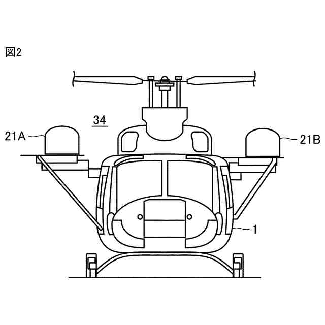 図1は、実施の形態1のヘリコプター衛星通信システムを表わす図である。図2は、ヘリコプター搭載通信装置のアンテナ部分の搭載状態の一例を表す外観図である。ヘリコプター衛星通信システムは、地上局32、通信衛星33、およびヘリコプター1を有する。