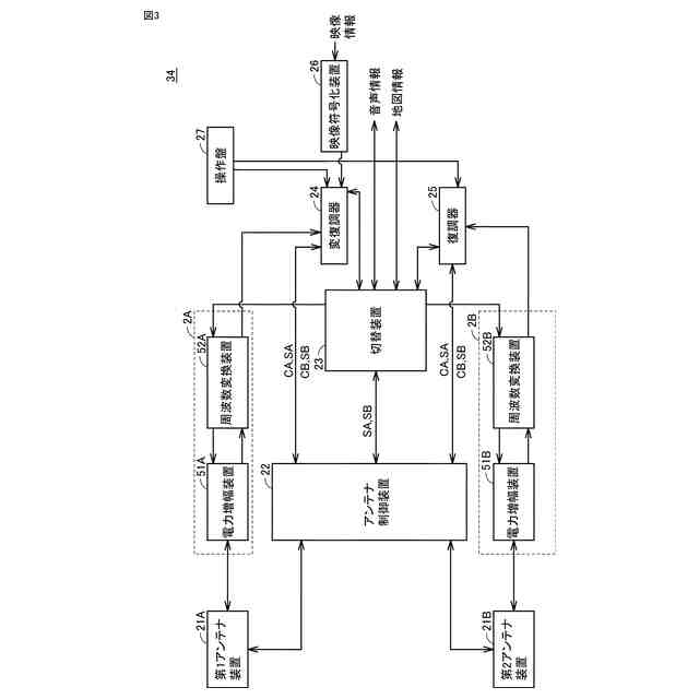 実施の形態1のヘリコプター搭載通信装置34の構成を表わす図である。