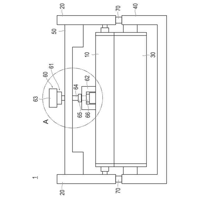 前記コンマ型ロールが取り付けられる第1フレームと、