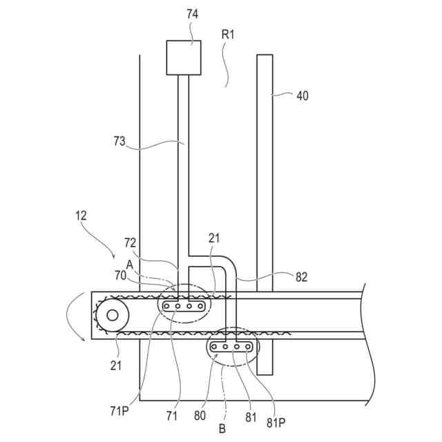 本実施形態に係る冷却装置の搬出口近傍を示す平面図である。