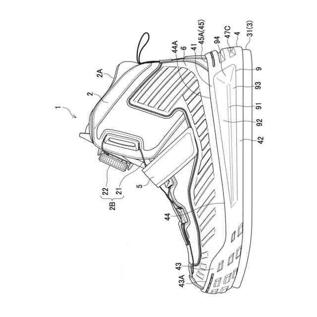 上記のように、ミッドソールがアッパーよりも外方に形成されたことで、アウトソールの後端部をより後方に位置させることができるので、アウトソールを前後方向で湾曲させやすいことから、アウトソールをミッドソールから離脱させることが容易になる。