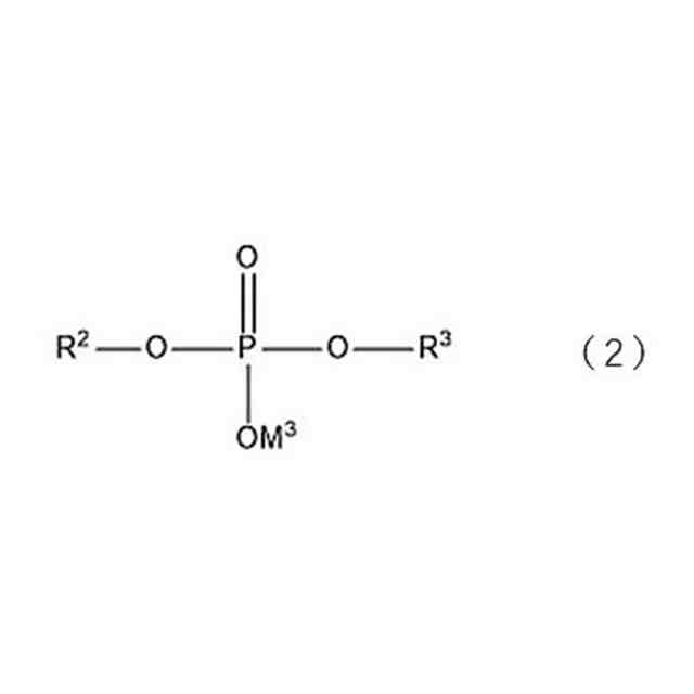 :水素原子、アルカリ金属、アルカリ土類金属(1/2)、有機アミン塩、アンモニウム、又はホスホニウム。ただし、分子中にM