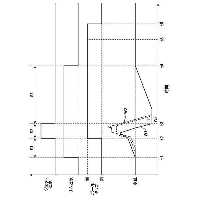 この第1の工程の後、上記リム吐水口からの洗浄水の吐出を継続した状態で、上記ジェット吐水口からの洗浄水の吐出を開始させ、上記排水トラップ管路内でサイフォン作用を起動させる第2の工程と、