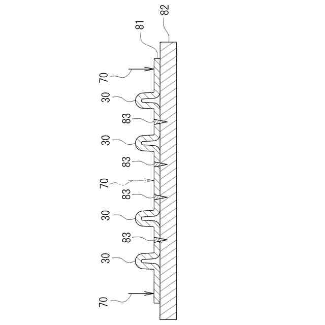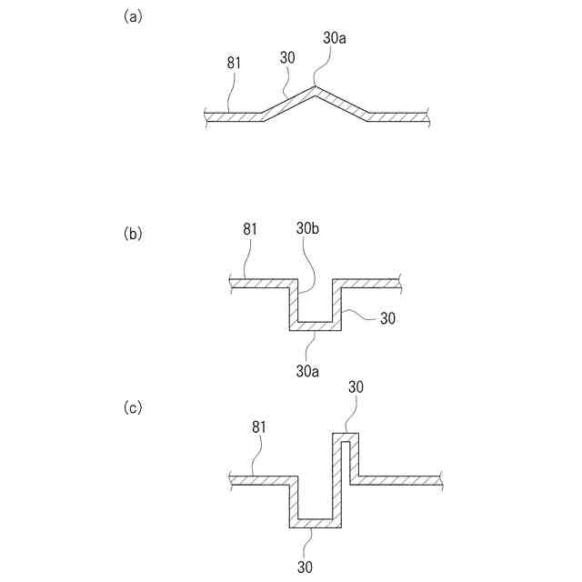 特に、接合部は、所定方向に沿って延びる形状であり、折り曲げ部は、接合部の延設方向に沿って延びる折り曲げ突条であることが好ましい。この方法によれば、接合箇所を所定方向に沿って接合していく際に、折り曲げ突条がスムーズにその開口部の間隔を拡縮するように変形していく。そのため、接合部を所定方向に沿って正確に形成することができる。
