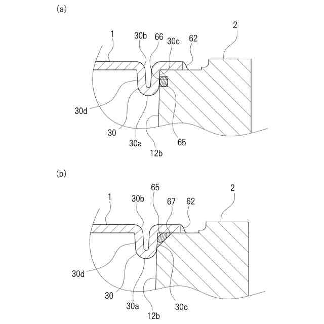 第1部材における接合部から離れた箇所に、第2部材側に突出するように折り曲げられた折り曲げ部が設けられ、