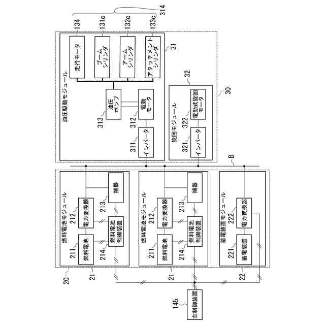 【解決手段】制御装置は、作業機械の停止指示を受け付けたときに蓄電装置に蓄電された電力を放電させる。制御装置は、蓄電装置の放電後に、燃料電池モジュールの停止処理を行い、停止処理により発生した発電電力を蓄電装置に充電させる。