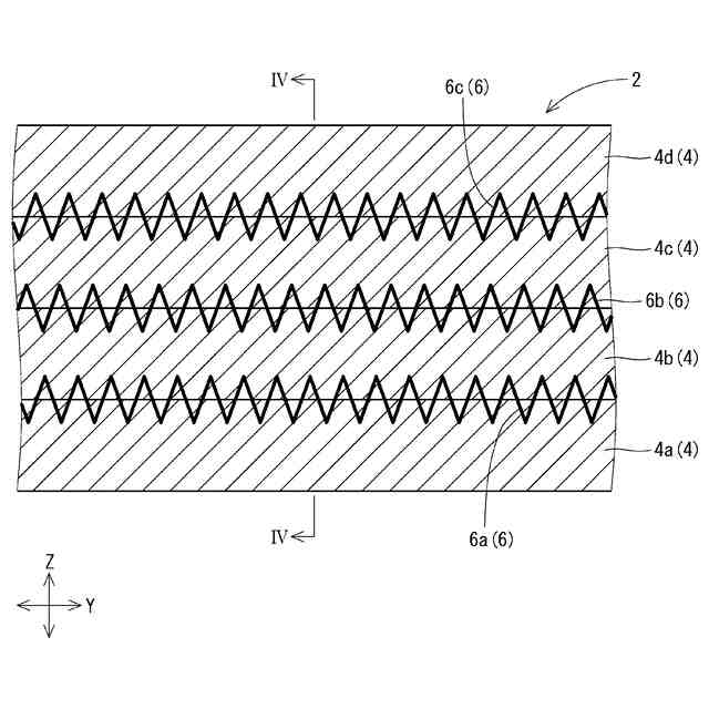 上記エレメントが、平面視において、他のエレメントとオーバーラップしている、請求項2に記載の補強ワイヤ。