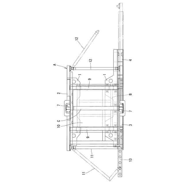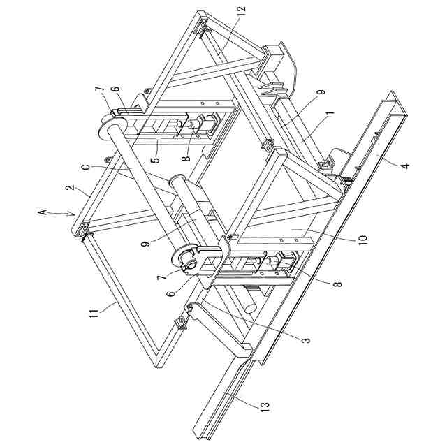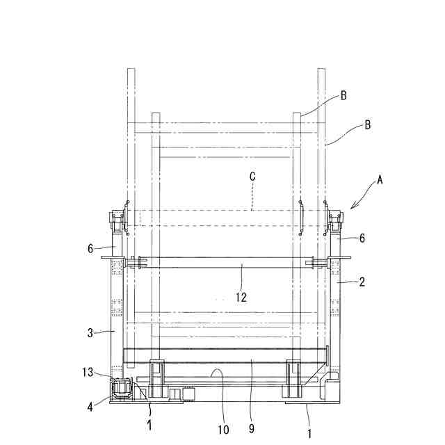四辺形のベース枠体の一対の相対向する端縁夫々から側面枠体が起立され、一方の側面枠体は固定側面枠体、他方の側面枠体は可動側面枠体とし、