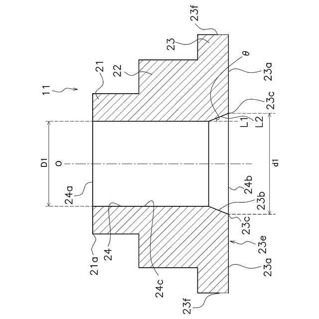 前記接触面と前記面取り部の接続部分の内径をd1とし、前記シール部材の内径をd2とすると、0≦(((d2-d1)/2)/d2)×100≦1.9を満たす、