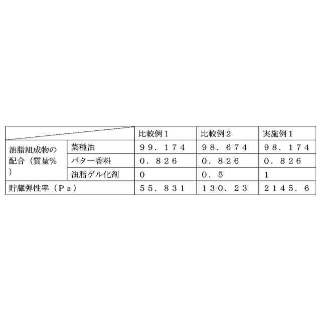 本発明の実施の形態の油脂組成物は、風味材を含有し、20℃の貯蔵弾性率が150~1000000Paである。