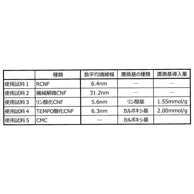 非特許文献1では、TEMPO酸化CNFと呼ばれる、カルボキシ変性CNFが検討されている。カルボキシ変性CNFは水中で水素結合による緩やかな物理的ネットワーク構造を形成し、それにより微粒子の沈降を抑制して、安定した分散状態を維持できることが報告されている。