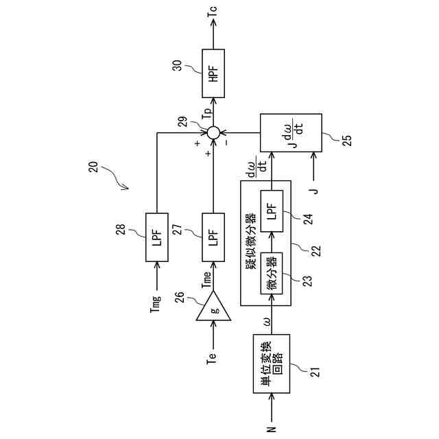 前記回転機の角速度に対して微分器およびローパスフィルタを適用することにより、前記回転機の角速度を疑似微分して回転加速度を算出し、