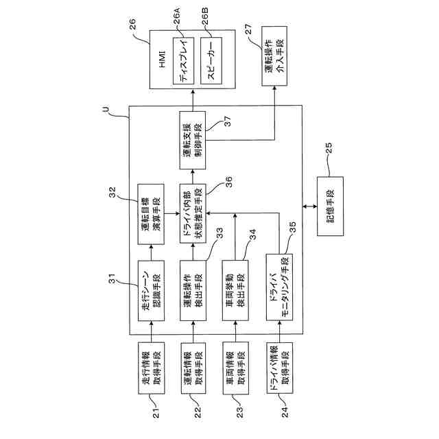 上記解決手法によれば、運転支援手段(例えば、HMI26、運転操作介入手段27)による運転支援の態様は、運動系予測誤差の推定と、体内系内部モデルの変化の推定とに基づいて設定される。すなわち、運転支援の態様は、運動系予測誤差とともに、体内系内部モデルの変化の有無を判断指標として、より適切なものに設定されるので、運転支援をドライバの内部状態(ドライバ内部モデルの状態)に、より適合した適切なものとでき、ドライバの運転技術向上とともに感情の良好化を効果的に達成できる。