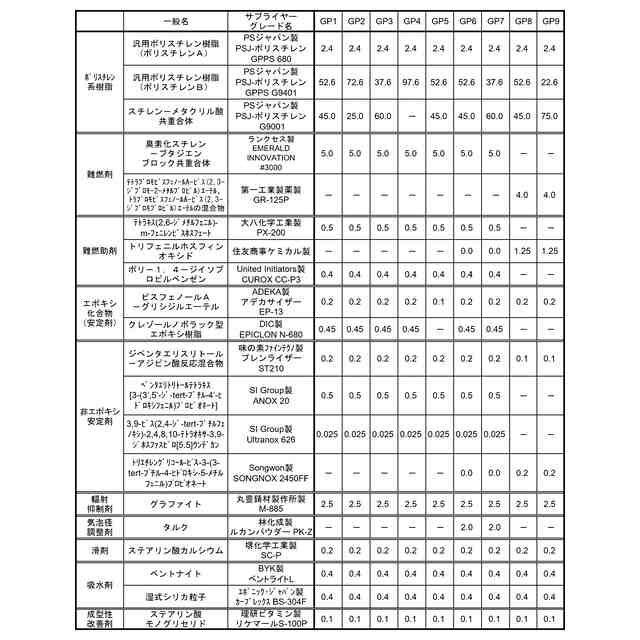 安定剤としてのエポキシ化合物の例として、ビスフェノールAジグリシジルエーテル型エポキシ樹脂、クレゾールノボラック型エポキシ樹脂およびフェノールノボラック型エポキシ樹脂が挙げられる。エポキシ化合物の含有量は、ポリスチレン系樹脂100重量部に対して0.3~1.0重量部であってもよい。エポキシ化合物の含有量は、難燃剤としての臭素含有ポリマー100重量部に対して10~20重量部であってもよい。