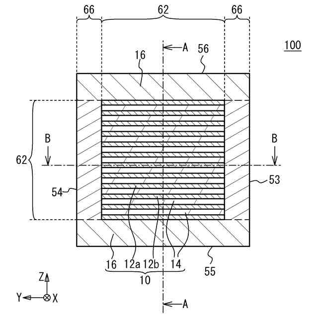 前記第1積層シートと前記第2積層シートとを第1方向に交互に積層することで素体を形成する工程と、
