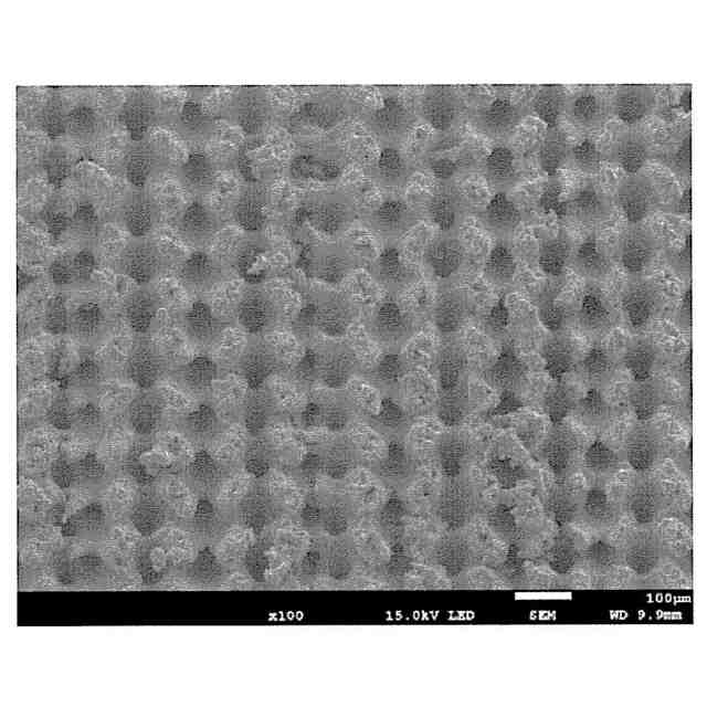 この特許文献1では、撥水面構造について、複数の溝部で仕切られた柱状構造部を有して、溝部に微小の凹部と凸部とが交互に所定ピッチで配設されたグレーティング状の周期構造であるとしており、また、柱状構造部の先端部は、外周壁部に囲まれた凹部を有するキャビティ構造を有するとしている。また、特許文献1では、フッ素系樹脂やシリコン系樹脂のような撥水機能を有する撥水剤を撥水面構造の表面にコーティングすることで、撥水性を向上させるとしており、実施例では、液滴量が5μLの場合の撥水面の滑落角が約10度であることを具体的に示している(特許文献1の図16を参照)。