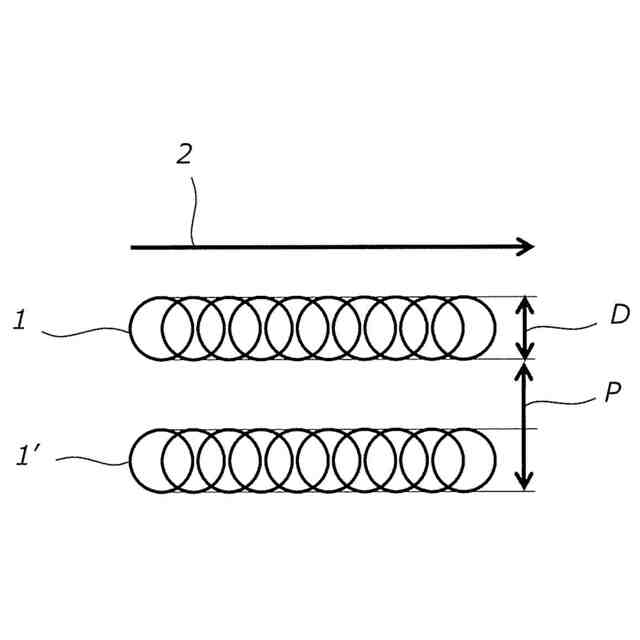 前記レーザー光のビーム径Dに対する前記レーザー光の照射間隔Pの比(P/D)が1以上、2以下である、請求項7に記載の撥液部材の製造方法。