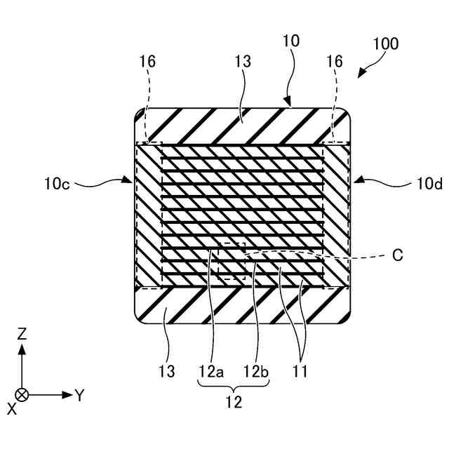 【解決手段】積層セラミックコンデンサ100は、第1軸に沿って積層された複数の誘電体層11と、第1軸に沿って隣接する誘電体層の間にそれぞれ配置された複数の内部電極12a、12b層と、誘電体層と、内部電極層との間に配置された中間領域40と、を有する素体10を備える。誘電体層は、一般式ABO