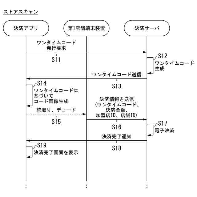 電子決済の大まかな流れを例示したシーケンス図(その1)である。