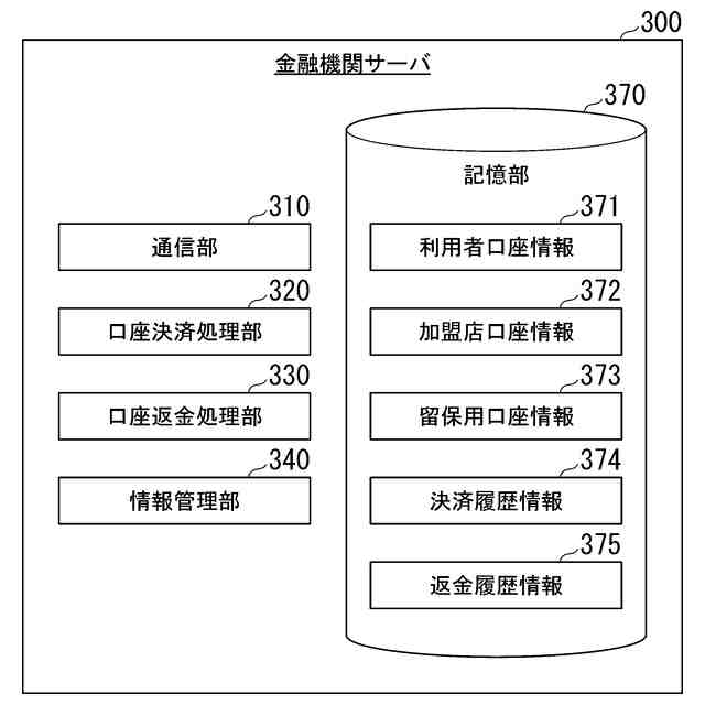 口座決済の確定を要求する決済確定要求を前記決済サーバから受信した場合、前記留保用口座から前記決済金額を差し引き、前記決済金額を前記加盟店の口座に加算する、