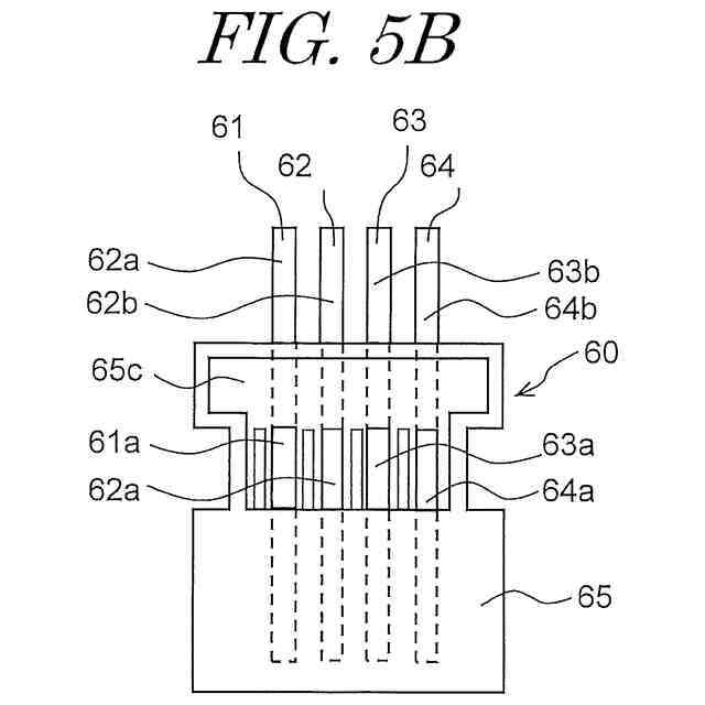 第1端子載置空間の外部端子挿入孔に設けられ第1端子載置空間を取り囲むフェライトコアによるノイズフィルタの一例である。