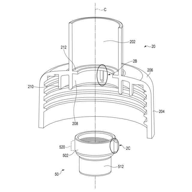 前記ベースキャップに対する前記吐出ヘッドの回転操作時に、前記ベースキャップの前記第1の突起部と、前記係合部材の前記第2の突起部とは、