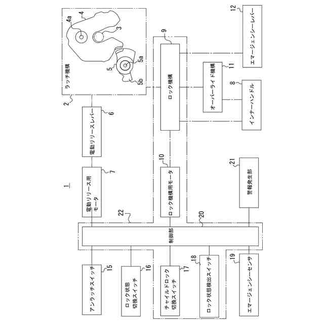 近年、チャイルドロック機構の電動化の要望が高まっている。しかし、チャイルドロック機構を電動化すると、ロック機構用モータとは別の専用のモータが必要となり、部品点数の増加とそれに伴う構造の複雑化を招く。
