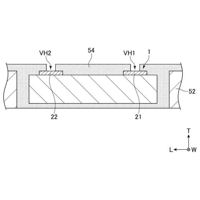 本発明者は、表面の平滑性が低い外部電極を有するコイル部品を基板に内蔵する場合には、ビアホールを形成するために照射されたレーザが外部電極表面で乱反射され、この乱反射されたレーザ光がビアホールの側壁に当たってビアホールの幅を規定の幅よりも広げてしまうため、ビア導体を精度良く形成できないという問題が生じることを発見した。